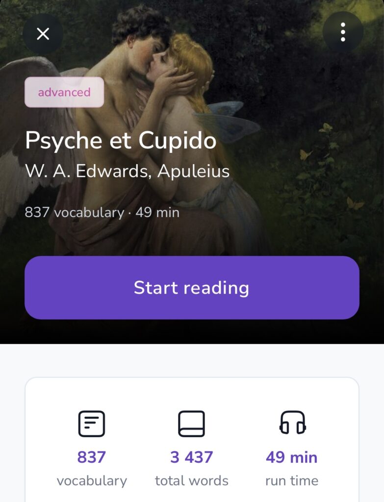 One of the great tragic love stories from antiquity is that of Psyche and Cupid. It comes down to us as a part of the 2nd century novel the “Golden Ass” by Apuleius. We here present an adapted version in a more accessible style suitable for advanced learners.